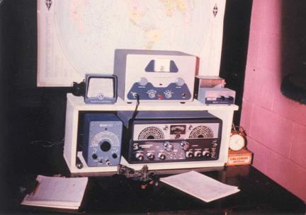 Dick's 1959 station was a DX-40 CW/Phone xmtr, a Knight VF-1 VFO and SWR bridge. The receiver is a Hallicrafters SX-100 with speaker. A 1926 Vibroplex Bug complete the station.