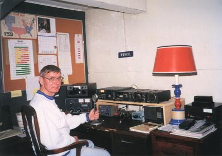 ![]() Photo courtesy WØHXL Dick's 2000 station is an ICOM 751A xcvr, a Kenwood TS130 xcvr with a VFO-120, an Astron RS-35M power supply, a Drake MN-2000 Transmatch, am Ameritron AL-811H Amplifier, a 1926 Vibroplex Bug, an Astatic D104G Mike, a Vibro-Keyer, a Heathkit HD-1410 Keyer and ICOM and Kenwood Speakers. |