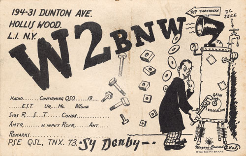DENBY--Seymour (W2BNW), on September 28 at age 98. He was predeceased by Shirley, his wife of 42 years. Surviving are his sons David and Robert, daughters-in-law Antha and Mindy, grandchildren Michele, Michael, Sarah, and Farrell, great-grandchildren Dune, Jack, and Annie. Graveside service scheduled for Sunday, 2:30pm at Beth Moses Cemetery in Farmingdale. ![]() QSL K8CX Collection |