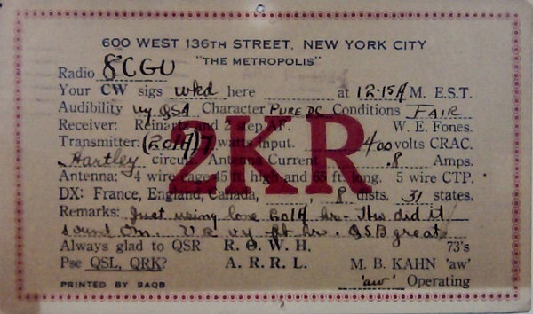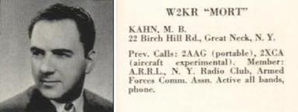 W2KR - April 19, 1982 Morton B. 'Mort' Kahn Patchogue LI, NY Great Neck LI, NY Liverpool, NY Pompey, NY Boca Raton, FL Charter Member #16 Born: January 16, 1908 First call: 2AAG Other call(s): 2KR, 2XCA & K4KR ![]() From the 1953 QCWA Yearbook ![]() 1947 Meeting ![]() Station (circa 1953) ![]() ![]() Images courtesy of the NL7XM Collection |
