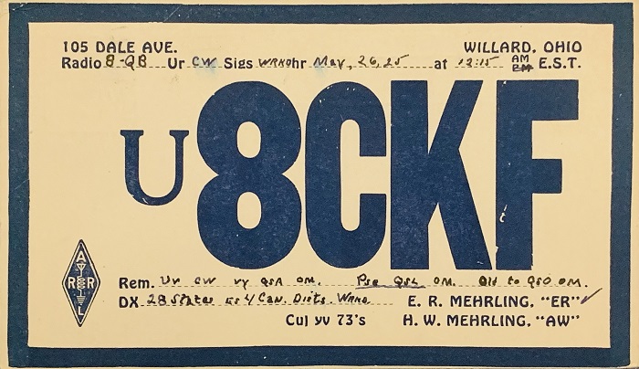 Emerson R. 'ER' Merhling Fairfax, VA QCWA # 5605 First Call: 8CKF Other Call(s): u8CKF and W8CKF born Willard OH died 6 July 1993, Fairfax, VA 2.raised in Columbus, OH graduated from South High School attended the Engineering School of Ohio State University, was a member of the marching band for four years. 1930, ER took a part-time job with TWA at the local airfield and installed aircraft radios in Ford Tri-motors. He needed the money to help put himself through school. In 1933, radio range receivers began to be installed in airline aircraft. 3. Chicago IL: Radio Operator for TWA, Chicago Municipal Field American, Northwest, TWA, and United had their radio operators located in different offices around the field connected by an interphone system. In 1934-35, Emerson and the other radio operators at Chicago discovered they needed a better system of coordinating the use of range station altitudes and times upon learning they were occasionally allowing two aircraft to use the same station at the same altitude at about the same time. Glen Gilbert was the radio operator for American. 1935: President of TWA named Emerson as TWA's representative on an airline-formed committee to design and establish a system of air traffic control. 4.Newark NJ: Founder of, and Trainee in, the first ATC center, 1934-36 established by Earl Ward and 6 young radio operators, one from each of 6 airlines under a legal entity - a not-for-profit incorporated in the State of Delaware - named "Air Traffic System, Inc." Chief: Earl F. Ward, ex-VP for Operations at AAL American Air Lines: Glen A. Gilbert Trans World Airlines: Emerson R. Merhling United Air Lines: Hugh "Mack" McFarlane Northwest Airlines: Homer F. Cole E. L. Cord ? Bureau of Air Commerce, in the U.S. Department of Commerce, took over the operation in 1936. later came L. Ponton de Arce, H. D. Copland, William H. Cramer, R. A. Eccles, John L. Huber, AAL R. S. Roose Clarence J. Stock, R. E. Sturdevant, J. V. Tighe, C. T. Tolpo, Lee E. Warren, AAL, E. A. Westlake 5.Chicago IL: Assistant Chief of the Center under Glen Gilbert 6.Pittsburg PA: Founder and Chief of the Pittsburg Center 7.LaGuardia, NY: Chief of the New York Center 8.Chief, Eastern Region Boston center New York center Washington center Pittsburg center 9.Berlin Germany: 1945 - 1949: on loan to the staff of Gen Lucius Clay, Chief othe of U.S. Army Occupation Force in Berlin U.S. member of the Air Coordination Committee charged with restoring civil air traffic services into Berlin. Director of Airway Operations and Director of the Berlin Air Safety Center, Templehoff Airport. ER left Berlin during the Berlin Airlift. 10.Washington DC: Chief, ATC Program staff Chairman, Airspace Subcommittee, Air Coordinating Committee Served as chairman for 8 years 11.ER retired from the FAA in 1966 12.1939: Married Mar Noir of Brooklyn NY children: Bob Merhling, 13.ER was an active amateur radio operator for more than 65 years first licensed in 1928 last call held was W4NH Past President of the Vic Clark Chapter of QCWA 14.ER's other activities in later years Past Director of the Virginia, Washington, and Maryland chapters of the Society of Airway Pioneers Past President of the Fairfax Chapter of the National Association of Retired Federal Employees Member of the Noonday Optimists Club Member of the Fort Myer Officers Club