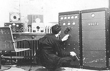 ![]() Photo courtesy WØGFQ Leo Meyerson's W9GFQ station looked like this in 1938. His receiver, on the left side of the desk, is a Hammarlund HQ-120. To its right is a Meissner Signal Shifter. Leo is tuning his WRL "custom built" transmitter, which ran a pair of 203As in the final amplifier and used Heising modulation. |