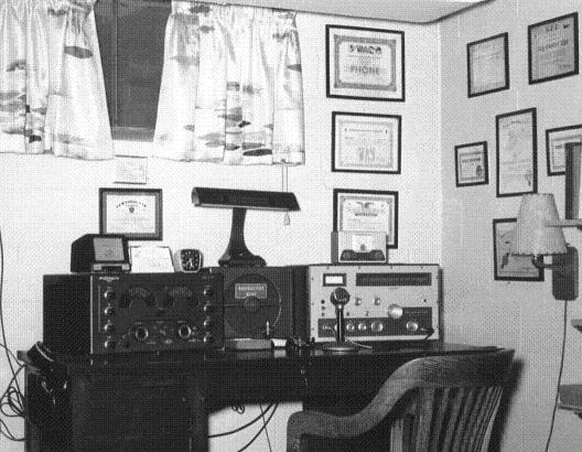 ![]() photo by John Sproat - W4JS Photo is the 1965 station of W3ZWI in Ross Township, PA. Heathkit TX-1 Apache transmitter with Astatic JT-30 microphone, and National NC-183D receiver. CDR rotator control box was decor only, as antenna was dipole in attic. |